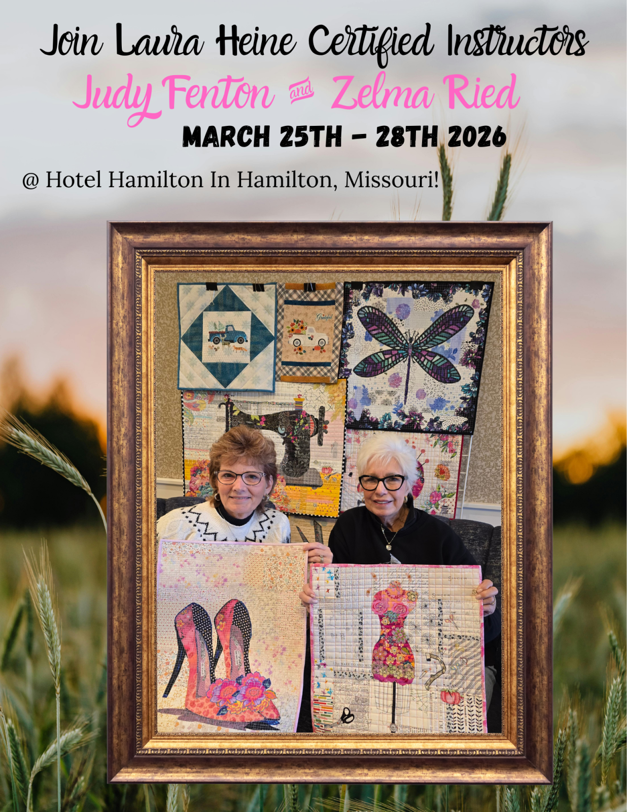 Advanced Certified Laura Heine Collage Instructors 3-night retreat in the heart of quilt country- Hamilton Missouri! Wed. March 25, 2026 Check in 4pm
